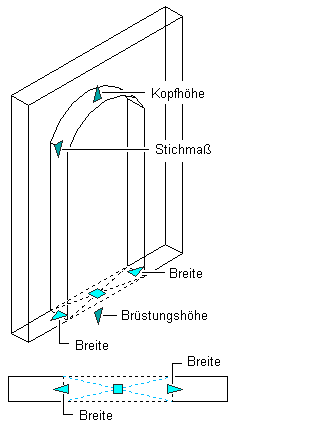 Stichmaß Stichmaß gilt für die Öffnungsformen Spitzenfünfeck, Bogen und Gotisch. |