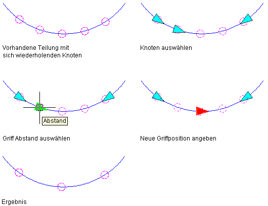 Ändern der Knotenverteilung einer Teilung mithilfe von Griffen