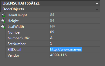 Gehen Sie wie folgt vor, um Werte für manuelle Eigenschaften für ein oder mehrere Objekte einzugeben. Wenn Sie z. B. einen Hinweis eingeben möchten, die für mehrere Türen in einer Zeichnung gelten soll, können Sie die Türen auswählen und den Hinweis in Datenform unter Anmerkungen eingeben.