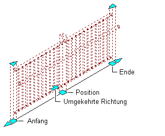 Anzeigen der Anfangs-, End- und Positionsgriffe eines Geländers sowie der Griffe für die entgegengesetzte Richtung