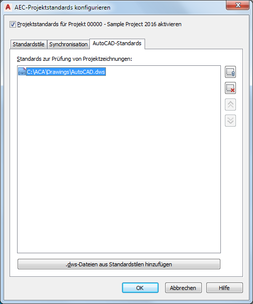 Gehen Sie wie folgt vor, um AutoCAD-Standards für das Projekt einzurichten.