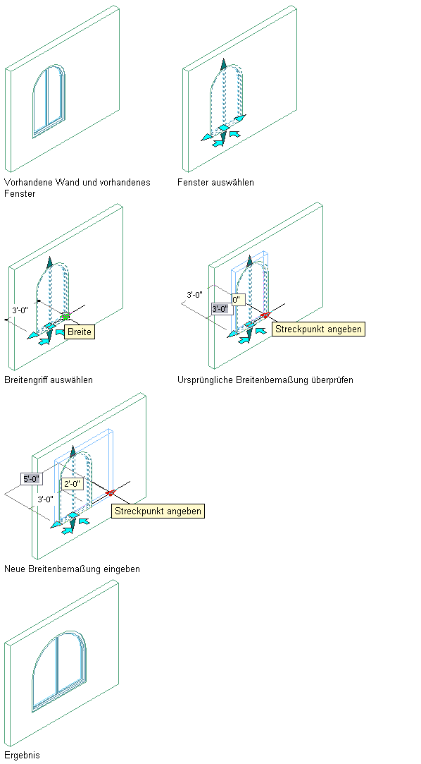 Verwenden der dynamischen Bemaßung zur Änderung der Fensterbreite