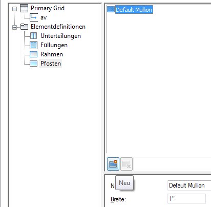 Da Tür-Fenster-Kombinationen mehrere verschachtelte Raster mit unterschiedlichen Pfosten aufweisen können, bietet es sich an, eine bestimmte Benennungskonvention für Rasterpfosten zu verwenden, die die eigentliche Rasterposition oder den Zweck innerhalb der Tür-Fenster-Kombination angibt. Beispielsweise gibt die Bezeichnung E3-SW1-Fensterpfosten einen Fensterpfosten für das Raster auf der dritten Ebene des ersten Stockwerks an.