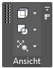 Die verschiebbare Gruppe Ansicht bietet Zugriff auf Befehle für Ansichten, visuelle Stile und Zoom- und Pan-Werkzeuge. Diese Gruppe ist standardmäßig nicht fest in die Multifunktionsleiste eingebunden, und Sie können unabhängig von der aktuellen Multifunktionsleisten-Registerkarte darauf zugreifen. Sie können die verschiebbare Gruppe Ansicht bei Bedarf an der Registerkarte Start fixieren.