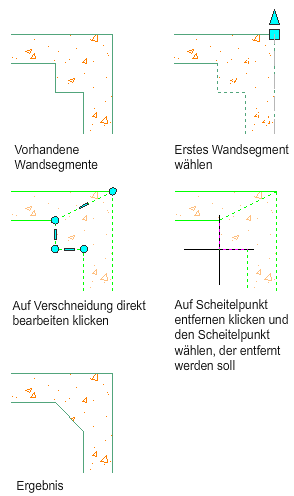 Gehen Sie wie folgt vor, um eine Wandverschneidung durch Entfernen eines Scheitelpunkts von einer Komponente zu ändern.