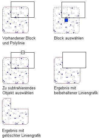 Subtrahieren eines Teils eines Blocks mit einer bestehenden Polylinie