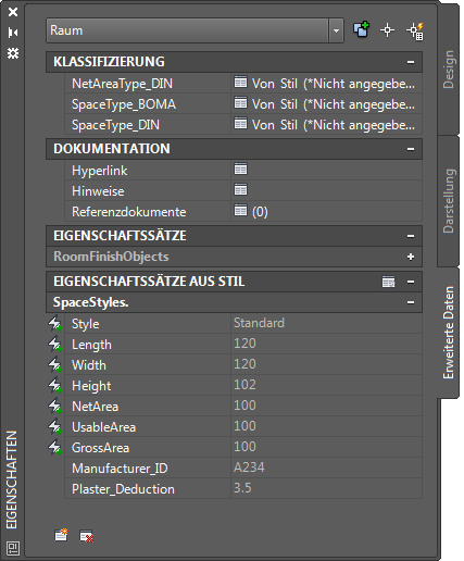Sind objekt- und stilbasierte Eigenschaftssätze mit dem Objekt verbunden, werden beide auf der Registerkarte Erweiterte Daten angezeigt.