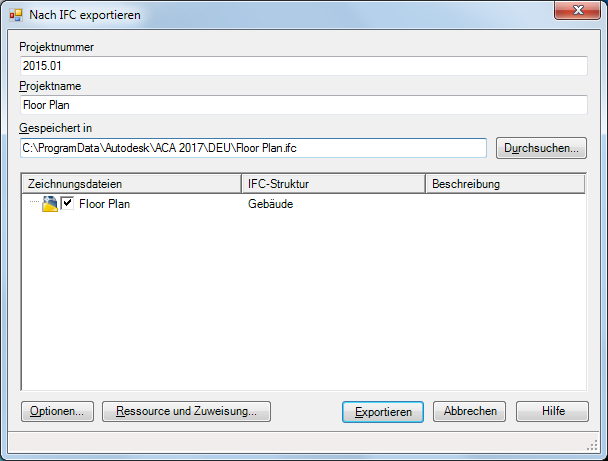 IFC (Industry Foundation Classes). Sie können stattdessen auch in der Befehlszeile ifcexport eingeben.