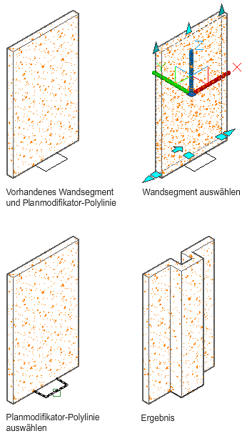 Wandplanmodifikator in Draufsichten und 3D-Ansichten