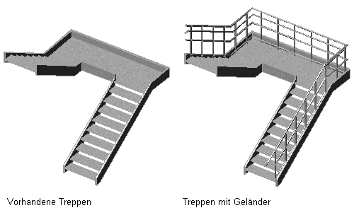 Gehen Sie wie folgt vor, um ein Geländer mit von Ihnen festgelegten Einstellungen zu erstellen, das einer Stufe hinzugefügt wird.