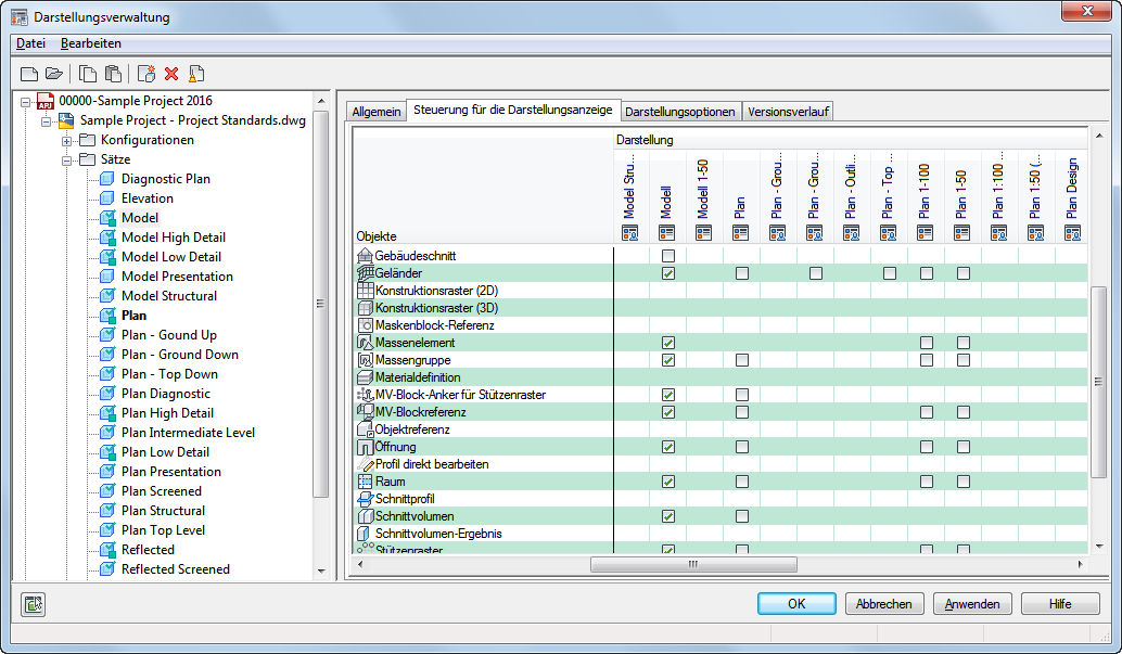 | Hinzufügen einer Darstellung für ein Objekt zu dem Darstellungssatz | Blättern Sie durch die Liste, um das Objekt zu finden. Wählen Sie die zu verwendende Darstellung. Wenn unter einer Darstellung kein Kontrollkästchen angezeigt wird, verfügt das Objekt nicht über diese Darstellung. |