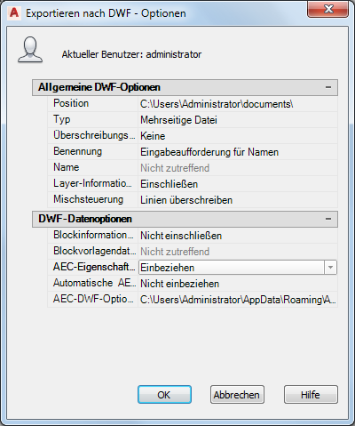 Alle automatischen Eigenschaften der Objekte, die Sie für den Export ausgewählt haben, werden in der PDF-Datei publiziert.