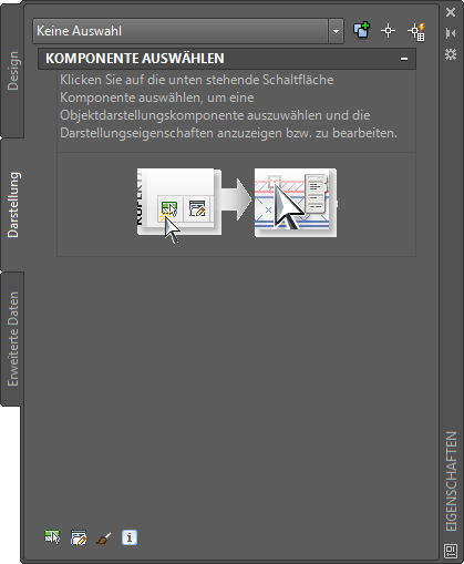 Anmerkung: Um die Anzeige der Registerkarte Darstellung auszublenden (bzw. einzublenden, falls derzeit ausgeblendet), geben Sie folgenden Befehl in der Befehlszeile ein: AECCHANGEDISPLAYTABSTATUS.