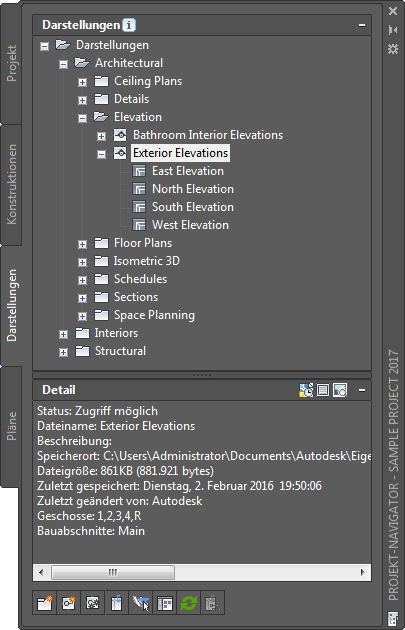 Modellbereichszeichnungen werden über die Registerkarte Ansichten im Projekt-Navigator angezeigt.