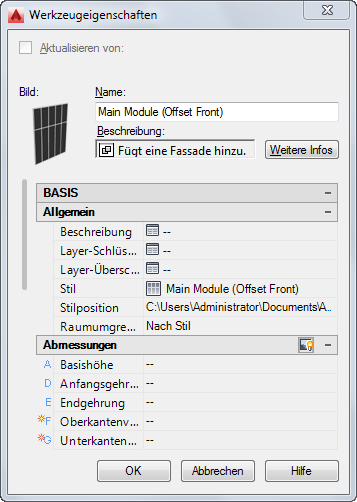 Wenn Sie einen Standardstil aus einer Projektpalette in die aktuelle Zeichnung kopieren möchten, können Sie entweder das entsprechende Werkzeug in die Zeichnung einfügen oder den dazugehörigen Stil aus der Werkzeugpalette in die Zeichnung importieren.