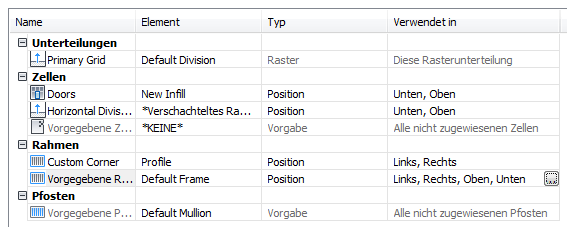 Angeben von unterschiedlichen Rahmendefinitionen für Tür-Fenster-Kombinationen