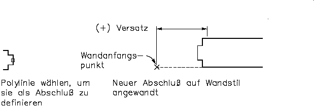 Ein positiver Wert versetzt den Abschluss relativ zum Wandanfangspunkt in positiver X-Richtung.