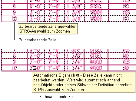 Anzeige von QuickInfos zur Bearbeitung von Objekten für Tabellenzellen