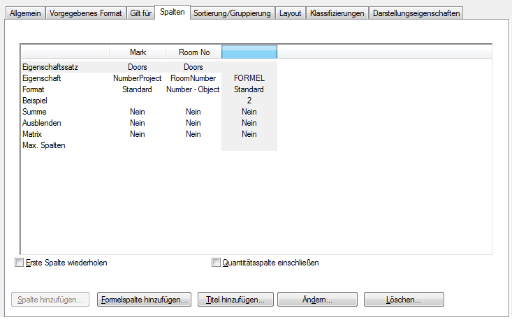 Außerdem müssen Sie vor dem Hinzufügen von Spalten auch die Objekte angeben, für die der Bauteiltabellen-Stil gilt.