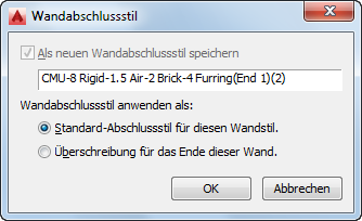 Das Dialogfeld Wandabschlussstil wird angezeigt und ermöglicht Folgendes: