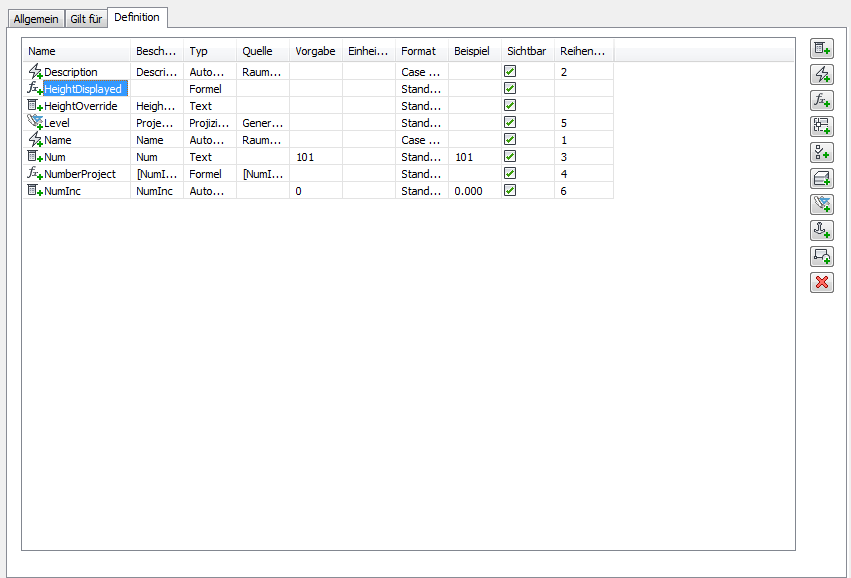 Auf der Registerkarte Definition für die Eigenschaftssatz-Definition Räume