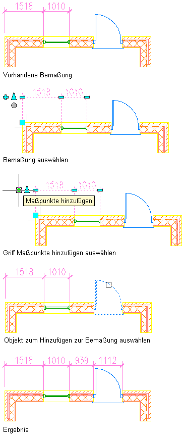 Finden. Sämtliche im Stil festgelegten Maßpunkte für die ausgewählten Objekte werden den Ketten der AEC-Bemaßung hinzugefügt.