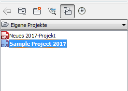 Über die Projektauswahl im linken Fensterbereich des Projekt-Browsers werden die in AutoCAD Architecture toolset erstellten Projekte angezeigt.