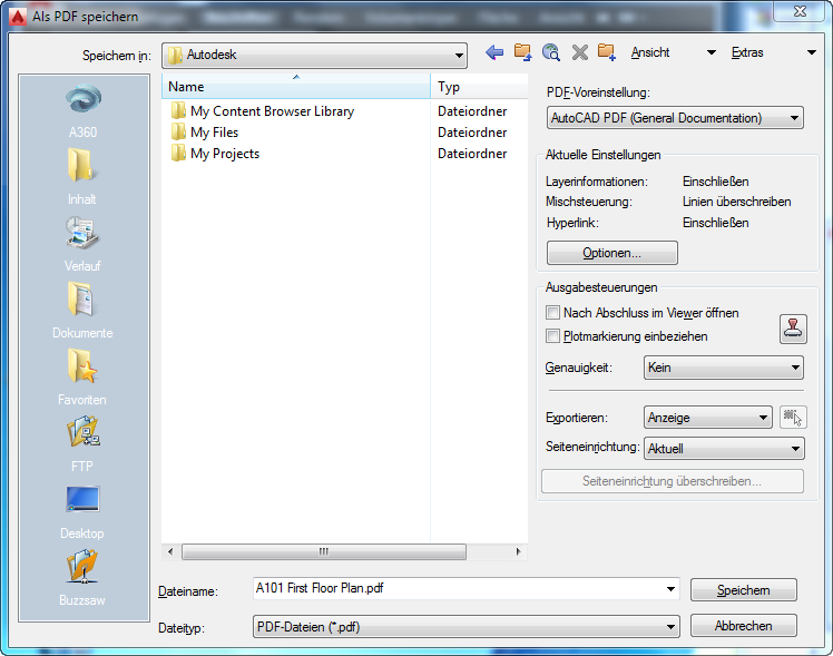 Publizieren von Zeichnungen in PDF