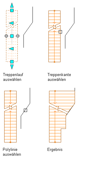 Projizieren von Treppenkanten auf eine gebogene Polylinie