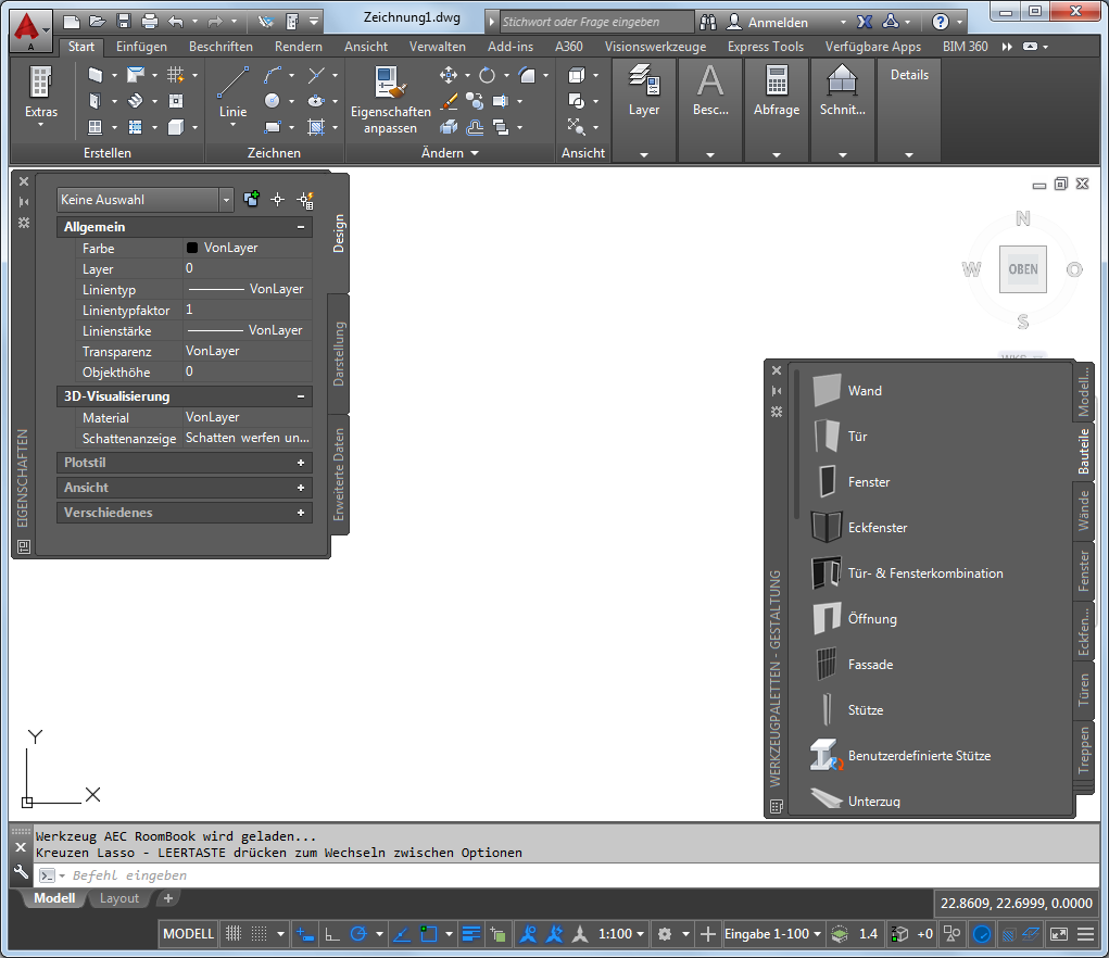 Standardkonfiguration des Arbeitsbereichs in AutoCAD Architecture Toolset