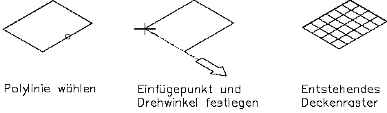 Anmerkung: Beachten Sie, dass die linke untere Ecke des Deckenrasters als Einfügepunkt des Deckenrasters verwendet wird, wenn der Drehwinkel auf 0 Grad eingestellt ist.