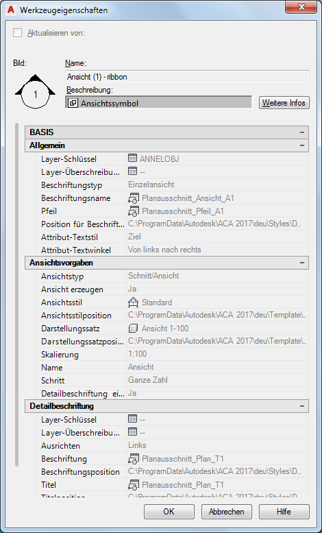 Die Beschriftungseigenschaften von MV-Blöcken werden aus der Blockdefinition abgeleitet. Die Beschriftungseigenschaften von AEC-Bemaßungen werden aus dem Bemaßungsstil abgeleitet.