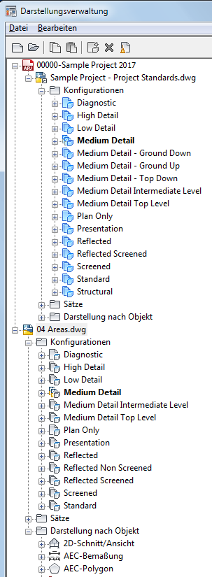 Sie können einzelne Komponenten des Darstellungssystems in einer Projektzeichnung synchronisieren.