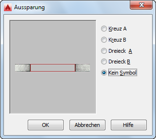 - Wählen Sie im Arbeitsblatt Aussparung den gewünschten Füllungstyp.