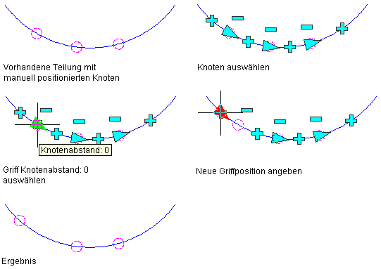 Ändern der Knotenpositionen einer Teilung mithilfe von Griffen