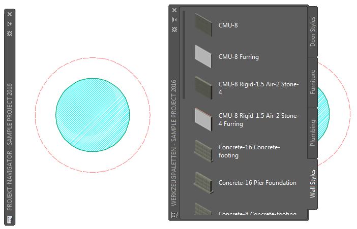 Gehen Sie wie folgt vor, um den Werkzeugpalettensatz auszublenden, wenn Sie ihn nicht verwenden. Der Werkzeugpalettensatz wird ausgeblendet, wenn Sie den Cursor vom Palettensatz bewegen, sodass nur die Titelleiste sichtbar ist. Wenn Sie den Cursor wieder über der Titelleiste positionieren, wird der Werkzeugpalettensatz erneut eingeblendet.