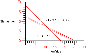 Abgesehen von den durch die Berechnungsregeln geforderten Bedingungen und der Tatsache, dass die Höhe der Auftritte ein jeweils gleich großer Teiler der Gesamthöhe von Stockwerk zu Stockwerk sein muss, kalkuliert das Programm Werte, die der ausgewählten optimalen Stufendicke und Steigungshöhe so nah wie möglich kommen.