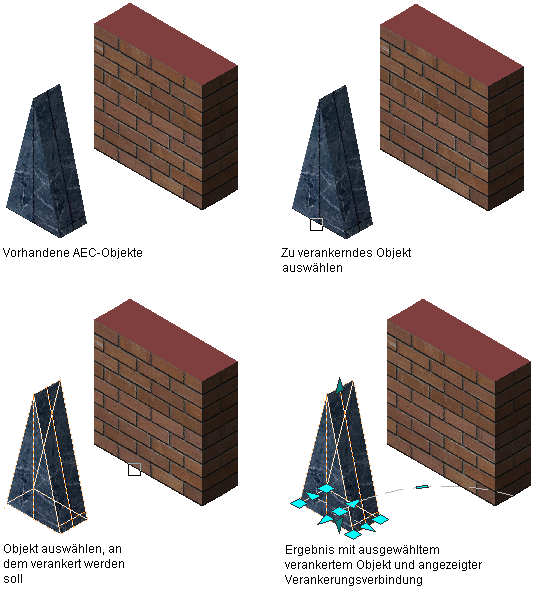 Gehen Sie wie folgt vor, um mithilfe eines Objektankers eine Verbindung zwischen zwei AEC-Objekten zu erstellen.