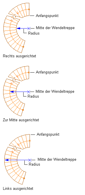 Der Radius wird vom Mittelpunkt der Wendeltreppe bis zum ausgewählten Ausrichtungspunkt gemessen.
