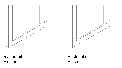 Gehen Sie wie folgt vor, um einen Pfosten aus der Fassade zu entfernen. Sie können eine Pfostendefinition erstellen, deren Kantenbreite und -tiefe Null entspricht. Die angrenzenden Füllungen werden erweitert, sodass sie den vom Pfosten belegten Raum füllen. Dies ist eine wirkungsvolle Methode, eine rahmenlose Verglasung darzustellen.