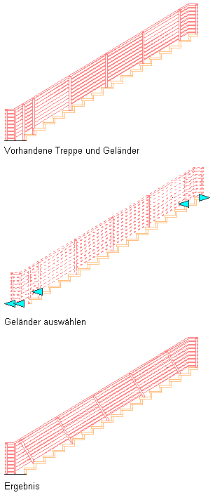 Gehen Sie wie folgt vor, um die lotrechte oder vertikale Geländerausrichtung relativ zu einem Treppenlauf festzulegen. Geländer sind bei der Erstellung standardmäßig vertikal ausgerichtet.