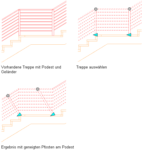 Verfügt eine Treppe über ein Podest, können Sie ebenfalls die Ausrichtung der Podestpfosten festlegen.