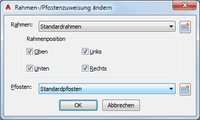 Das Arbeitsblatt Rahmen-/Pfostenzuweisung ändern wird angezeigt.