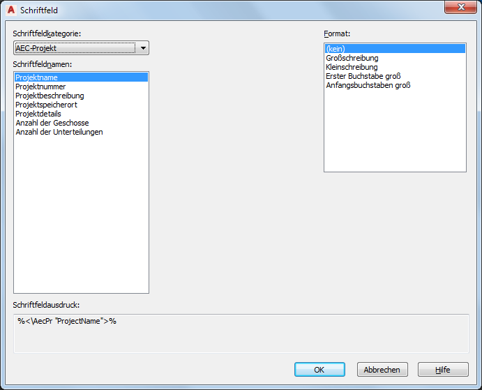 - Wählen Sie unter Feldnamen das Feld, das Sie einfügen möchten.