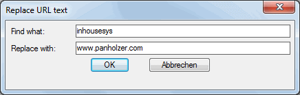 Sie können eine vollständige URL oder den Teil einer URL angeben. Beispielsweise können Sie alle .com-Hyperlink-Verweise durch .net ersetzen, oder Sie können in einem einzigen Vorgang eine interne URL durch eine URL für eine externe Website ersetzen.