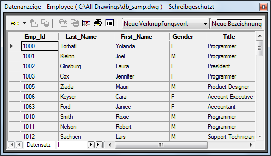 Nach erfolgter Konfiguration der Datenquelle können Sie in der Datenanzeige des Programms Datenbankdatensätze anzeigen.
