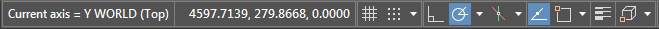 Anmerkung: Wenn RTUCS aktiv ist, werden die sechs orthogonalen Ausrichtungen angezeigt, sobald das BKS an einer dieser ausgerichtet wird. Wenn Sie die X-Achse beispielsweise mit RTUCS um 90 Grad von der Weltposition drehen, wird in der Statusleiste Folgendes angezeigt: Aktuelle Achse = X < 90 Vorne. Diese Informationen können Sie auch über die Option Wechseln anzeigen.