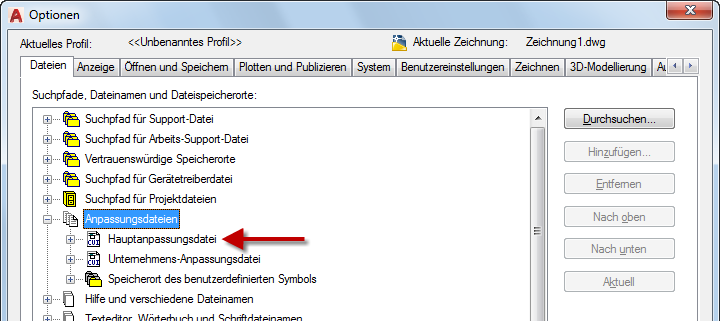 <Laufwerk>:\Benutzer\<Benutzerprofil>\Anwendungsdaten\Autodesk\<Produktversion>\<Versionsnummer>\<Sprache>\Angepasste Dateien aus Vorgängerversion