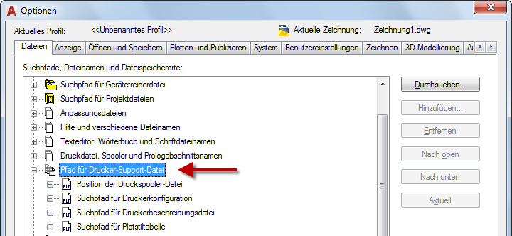 Die Plotterkonfigurationsdatei selbst wird nicht migriert; stattdessen wird eine Kopie der Datei im Unterordner namens Produktname PC3 Files erstellt. |