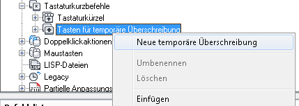 - Klicken Sie mit der rechten Maustaste auf den Knoten Tasten für temporäre Überschreibung. Klicken Sie auf Neue temporäre Überschreibung.